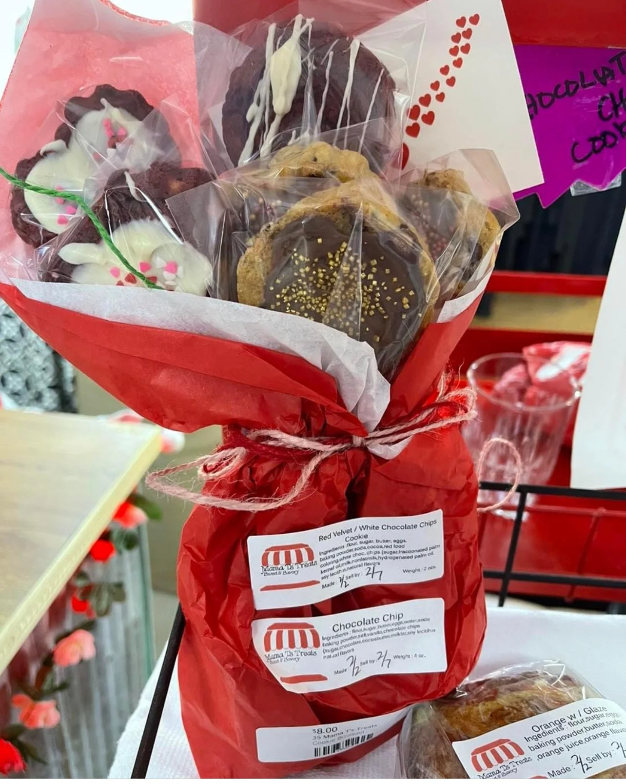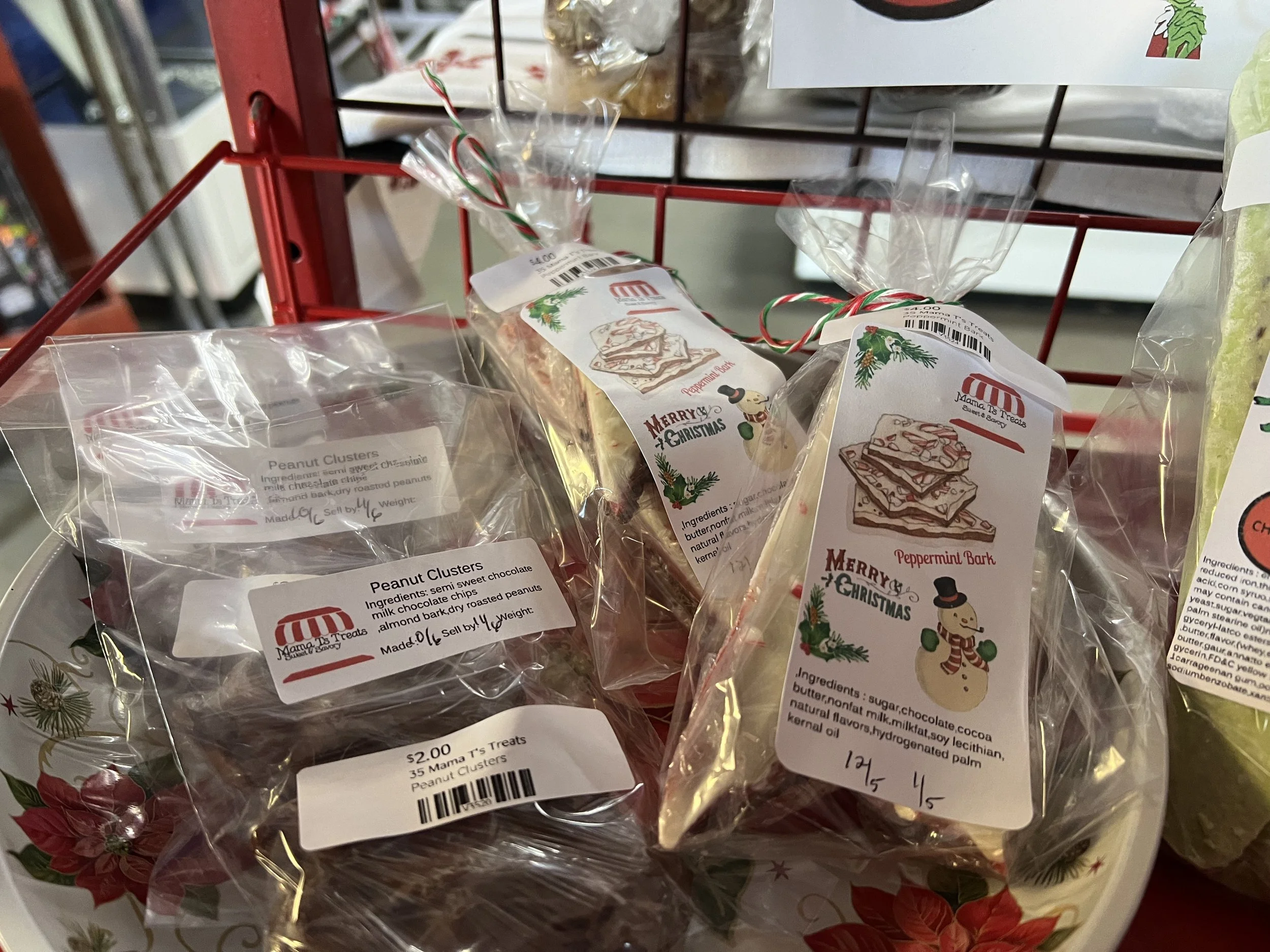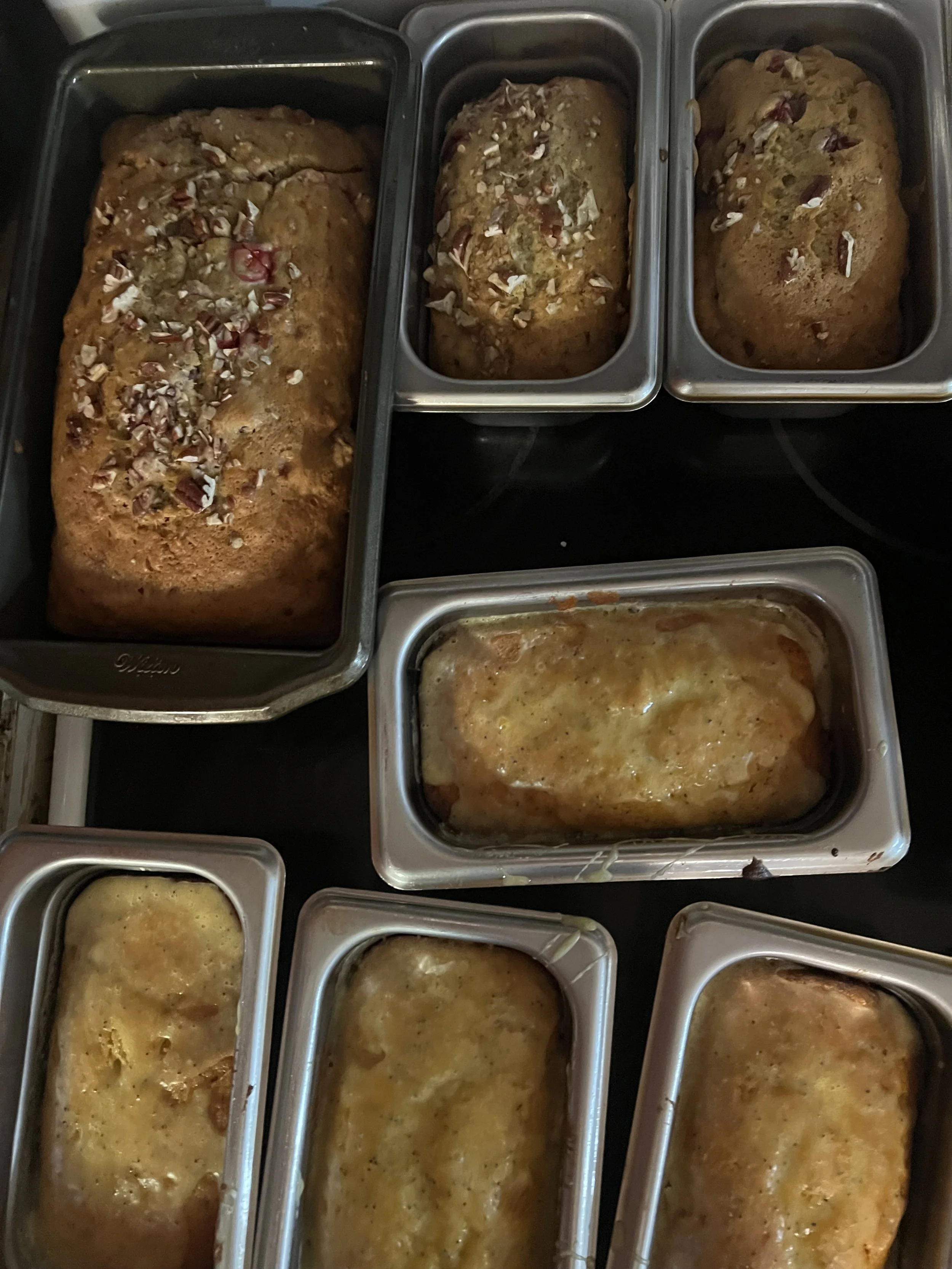 Mama uses only the freshest ingredients in her recipes, all made from scratch. Main ingredients are unbleached flour, sugar, eggs, butter. Mama’s French bread just has unbleached flour, olive oil, yeast, salt, and water. When she makes different flavors she uses real fruits and vegetables when needed.
