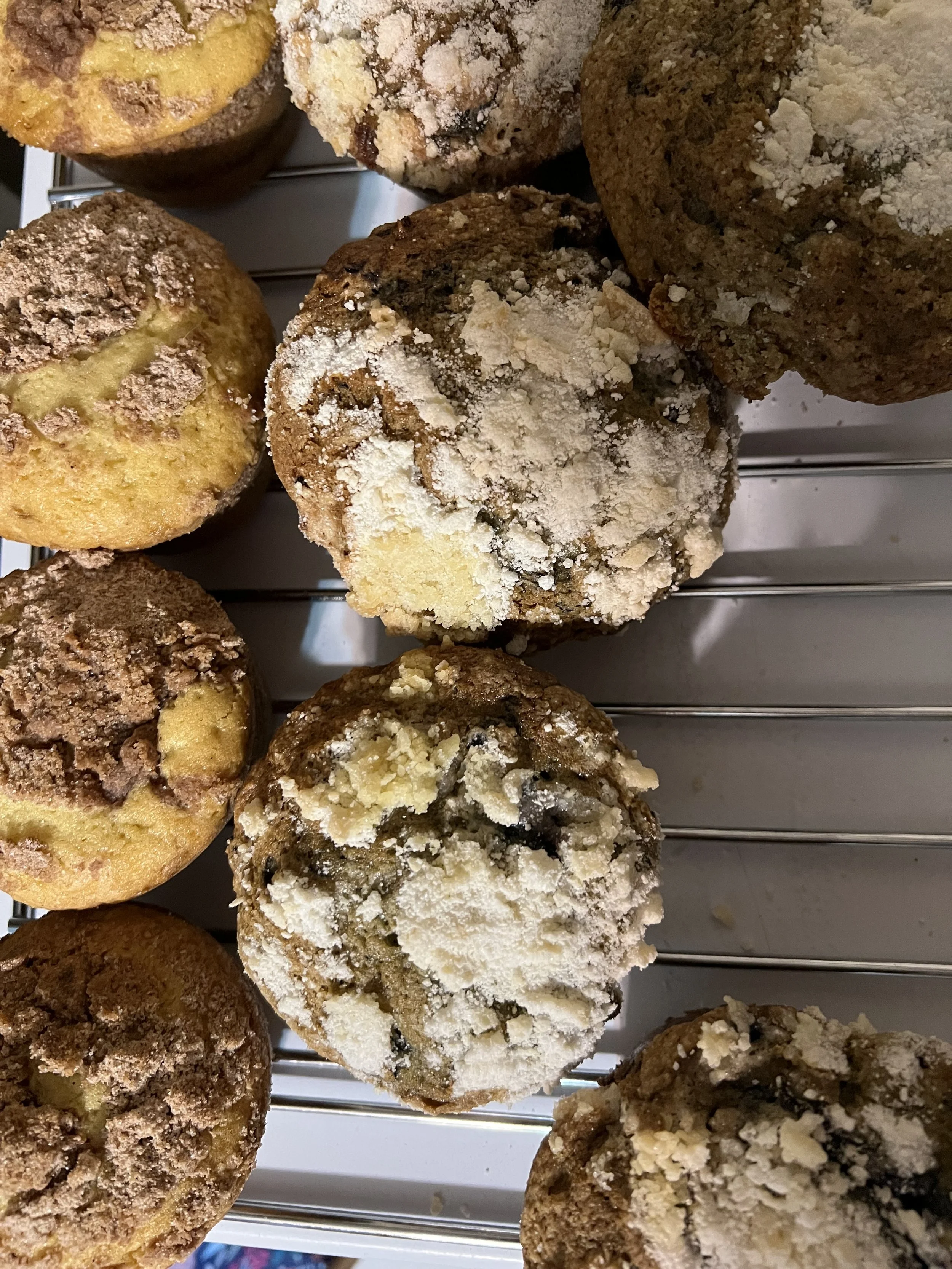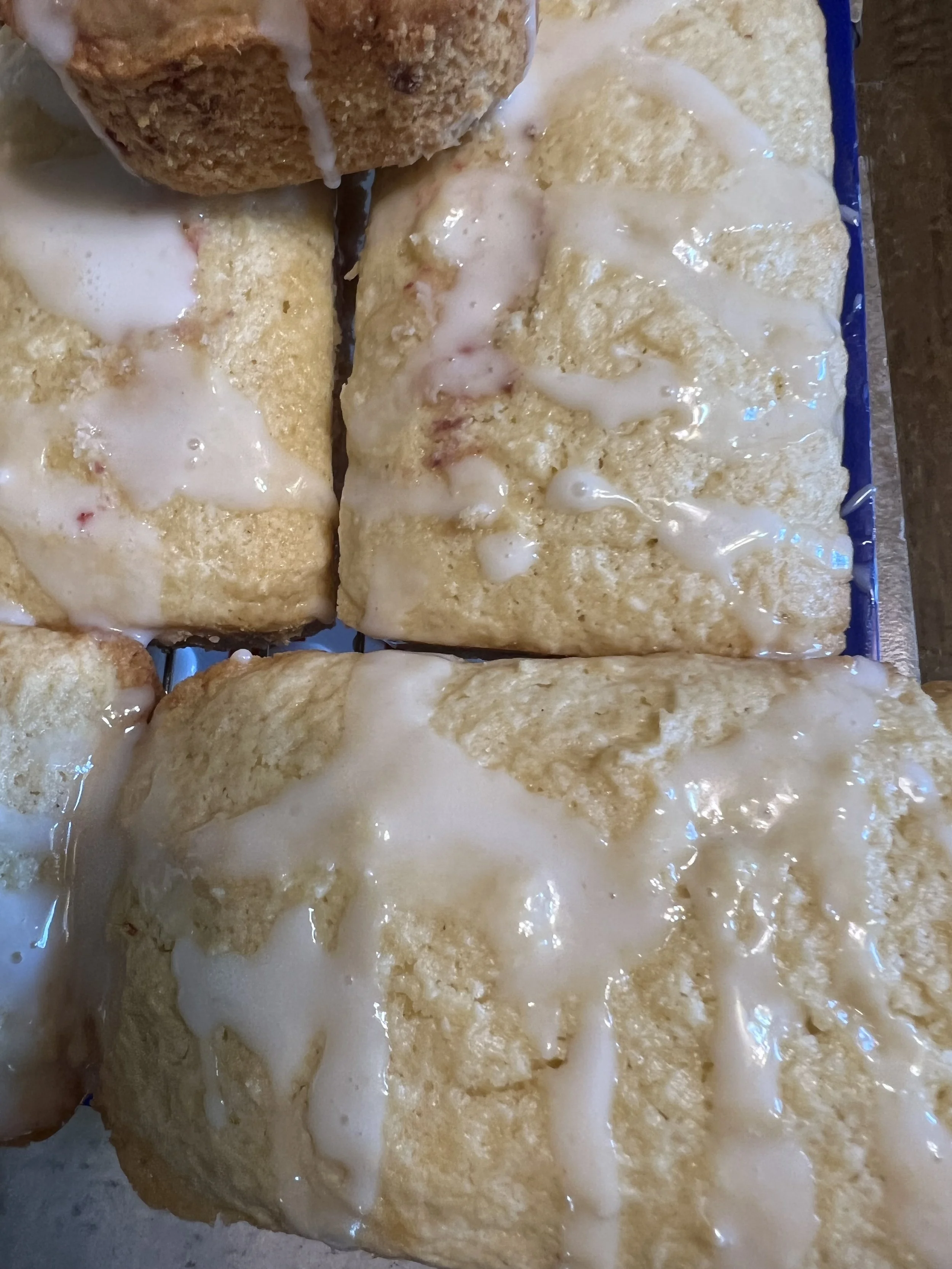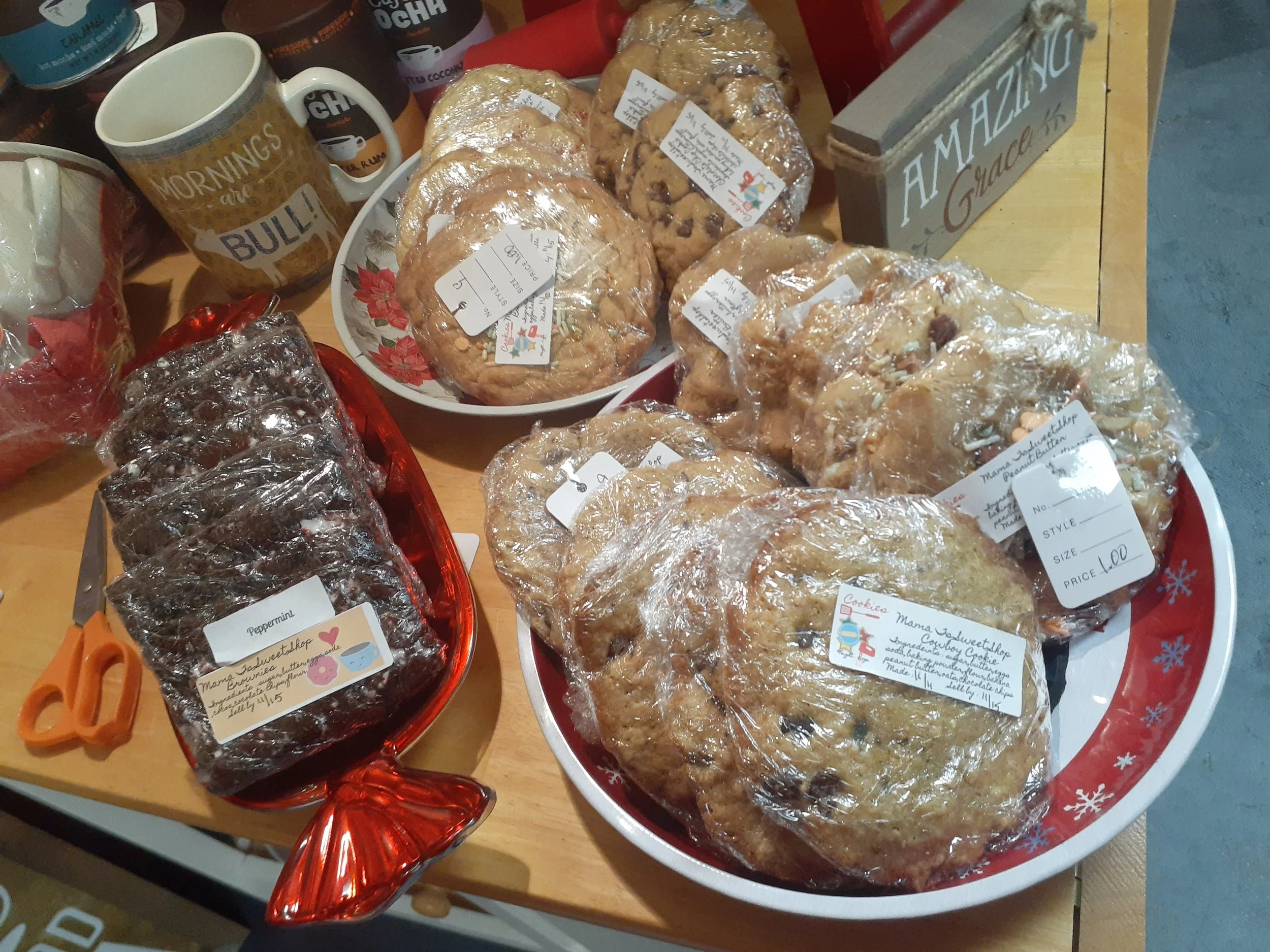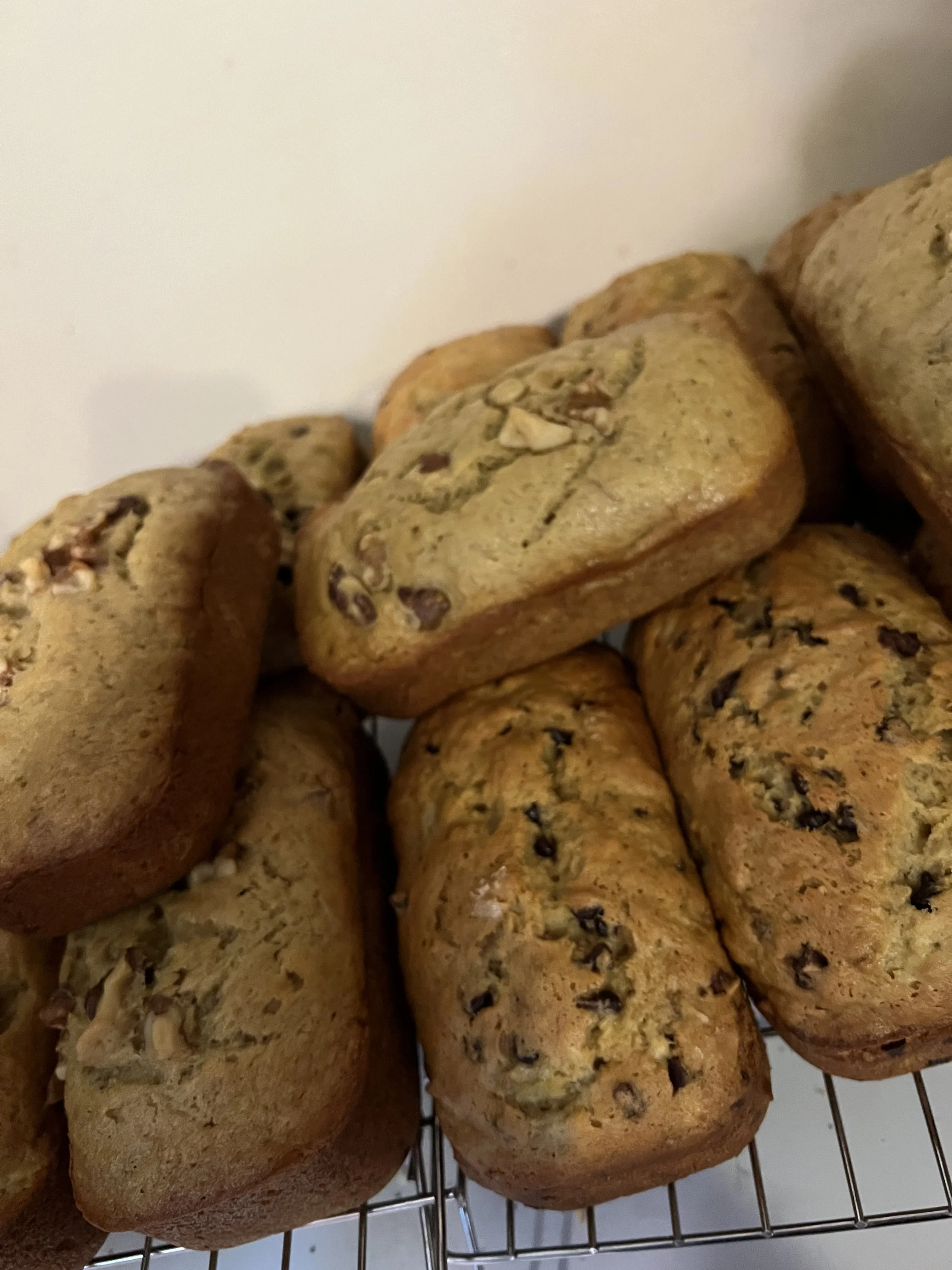 Mama uses only the freshest ingredients in her recipes, all made from scratch. Main ingredients are unbleached flour, sugar, eggs, butter. Mama’s French bread just has unbleached flour, olive oil, yeast, salt, and water. When she makes different flavors she uses real fruits and vegetables when needed.